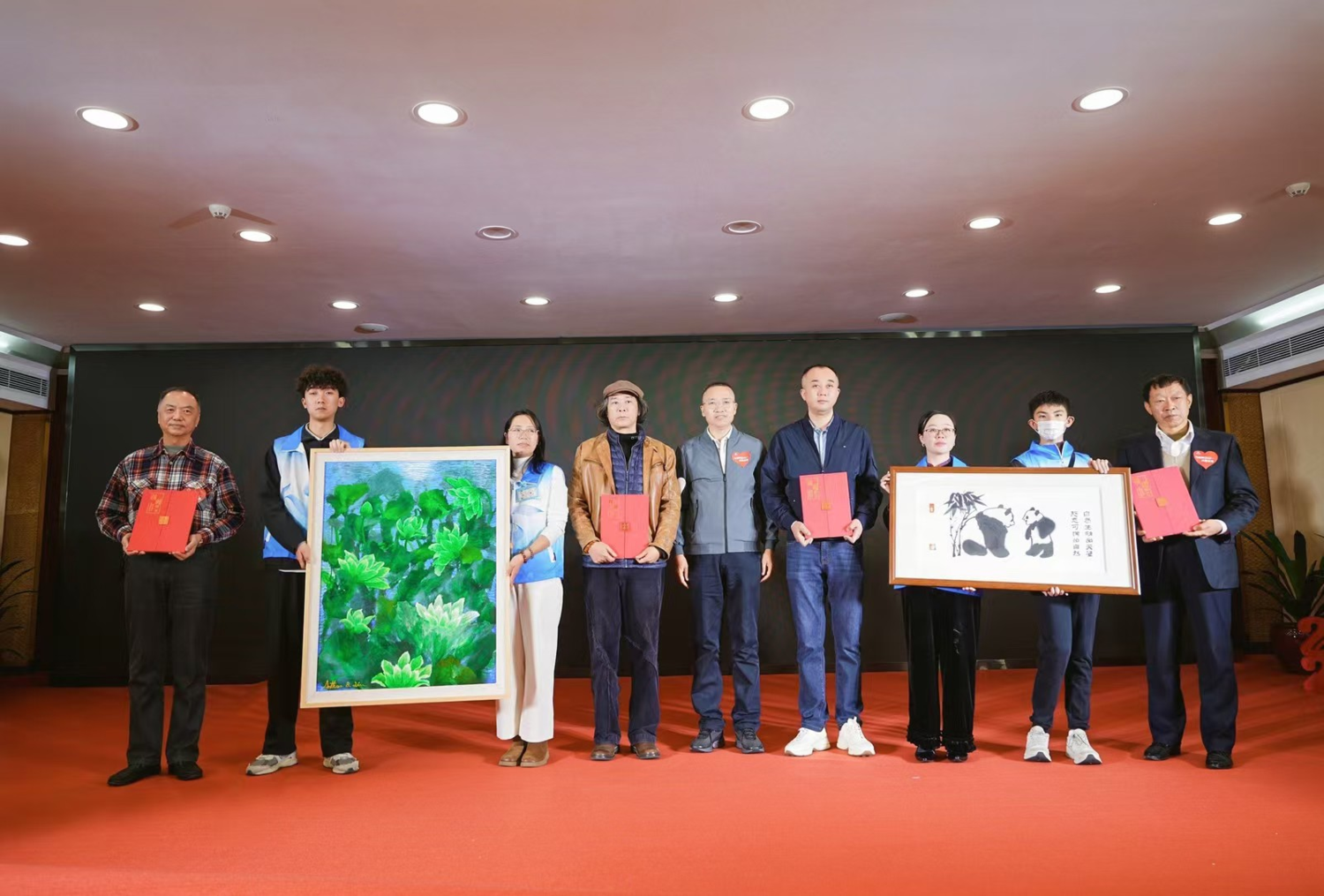 04 微善成河,艺术与爱心交织 感恩会特别设置了画作慈善认捐环节。两幅由爱心艺术家捐赠的精品画作《熊猫》与《荷塘夜色》进行了现场认捐。认捐仪式庄严而温馨,所得善款将悉数用于教育公益事业。