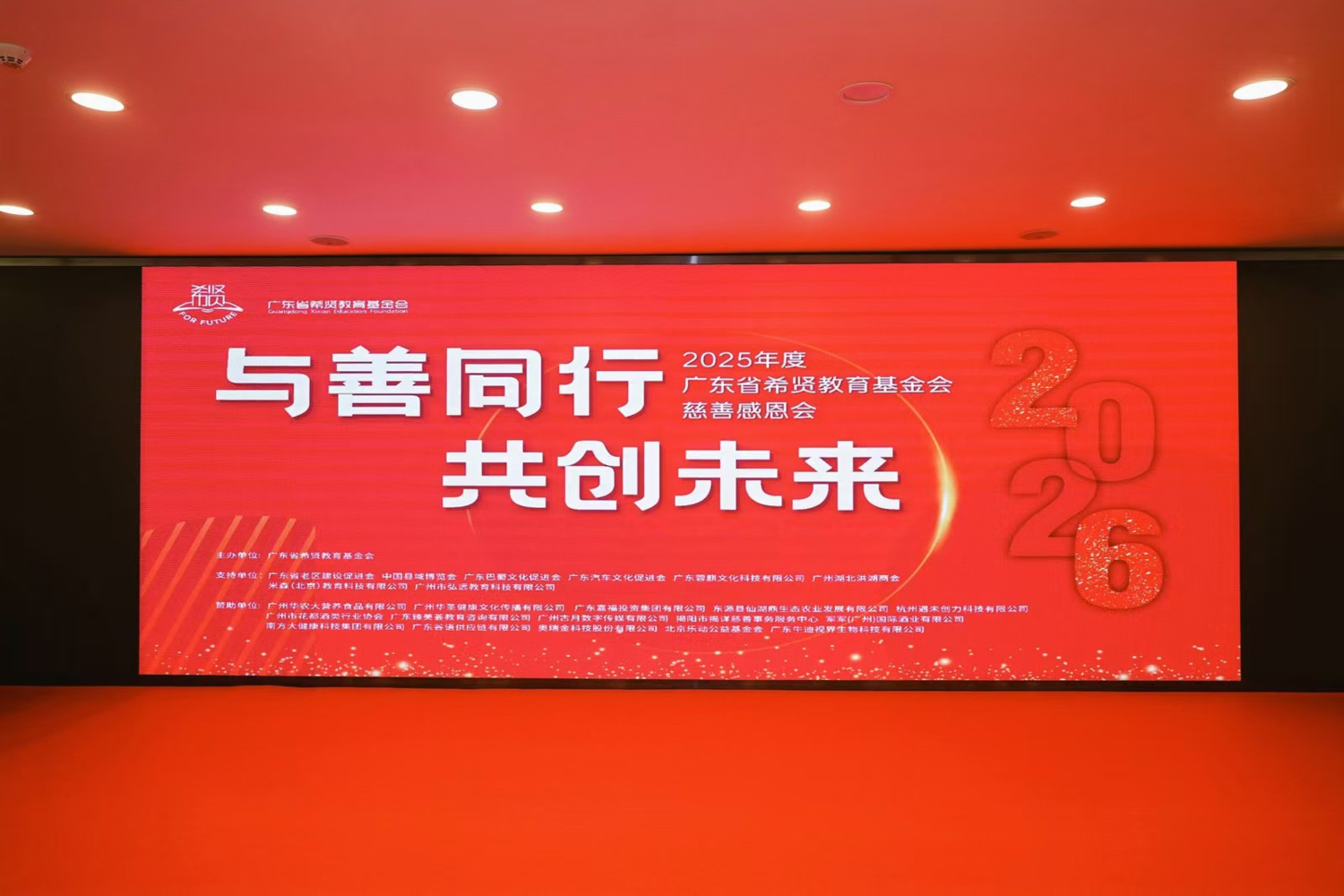 2026年1月24日,“与善同行 共创未来”2025年度慈善感恩会在广州隆重举办,广东省希贤教育基金会主办,健康中国公益行专项基金协办,奥瑞金科技股份有限公司和北京乐动公益基金会等单位鼎力赞助支持。 感恩会围绕“一起面对、一份感恩、一份赋能、一份微善、一起共创” 五个篇章展开,将颁奖、倡议、发布、互动与艺术融为一体,呈现了一场有温度、有深度、有行动的年度公益盛典。 中国首善、全国道德模范陈光标作为基金会“第002号月捐人”,担任“希贤月捐宣传大使”。 01 感恩同行,共筑善的基石 基金会理事长唐玲在致辞中深情回顾了希贤十三年来的公益坚守,并着重分享了基金会在新时代下的创新探索。