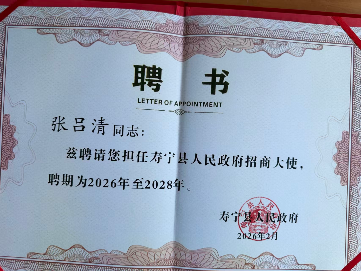 张吕清受聘为寿宁县人民政府首批招商大使张吕清受聘为寿宁县人民政府首批招商大使 2月14日,寿宁县2026年“双招双引”推介会暨新春乡贤恳谈会在难忘下党学习基地隆重召开。县委书记张永森出席并致辞,县人大常委会主任简树铃、县政协主席温加生等县领导,与200多位海内外乡贤、企业家代表及各界嘉宾欢聚一堂,以乡情为纽带、以发展为约定,共叙桑梓情谊,共商振兴大计。